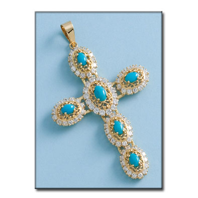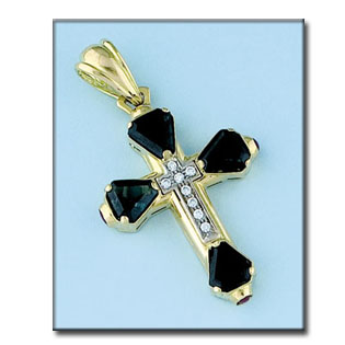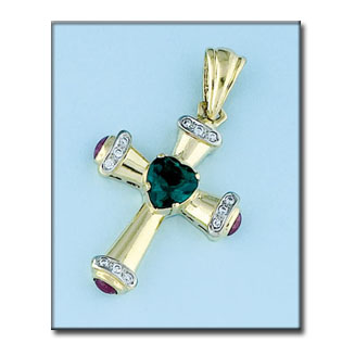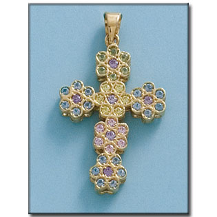CRUZ EN ORO DE 18KL PIEDRAS COLORES