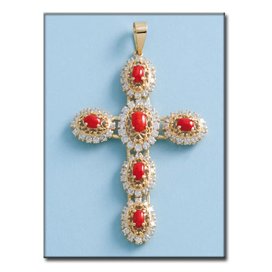 CRUZ EN ORO DE 18KL CORALES CIRCONITAS
